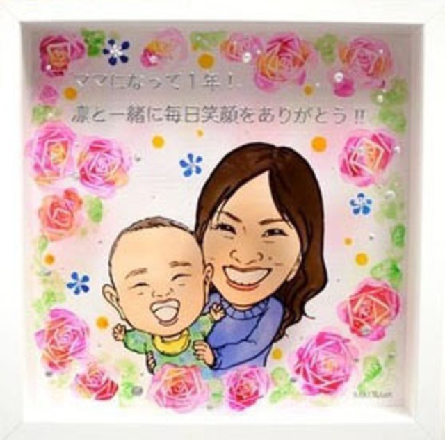 ⭐︎光を当てると、ステンドグラスのように映り込みます⭐︎ 誕生日にぴったりの、光り輝く似顔絵プレゼント☆ 家族や、彼氏彼女、大切な友人、お世話になっている職場の方など これからもずっと輝く笑顔でいてね、いつもありがとう!の気持ちをお届けします。 写真から似顔絵作成できますので、全国どこからでもそっくりな似顔絵を作成します。 サプライズプレゼントにも大人気です。 周りの花や服装の色などは、なるべく記念日に合わせた配色や、頂いたお写真を参考に作成致します。ご希望がある場合はお知らせ下さい。 ●サイズ (額込み 縦27cm×横27cm×厚み6cm) ●リボン、透明ラッピング付き ★額は、ホワイト・ブラックからお選びください。 ★基本料金 15,000円は、1名様上半身の料金です。 ★下書きをご提示いたします。目の大きさや輪郭など修正2回程度まで可能です。作成開始後のお写真変更は受付できかねますので予めご了承下さい。 ★スタンドは付属しておりません。