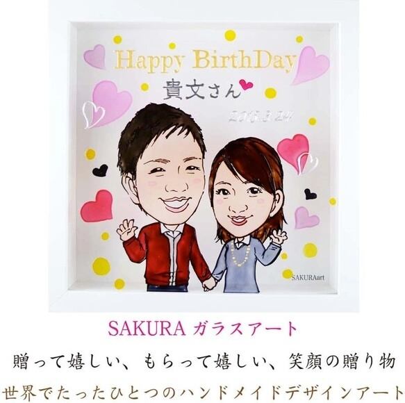 似顔絵ガラスアートのプレゼントは大変喜ばれます。